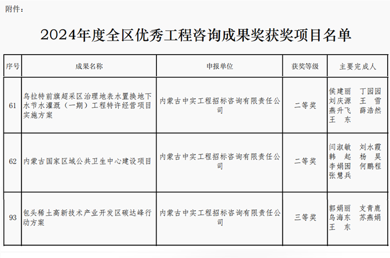 2025-04-167796 次2025年4月16日,内蒙古工程咨询协会公布了2024年度优秀咨询成果奖获奖单位名单,我司取得两个二等奖和一个三等奖,我司专业能力和服务质量再次获得行业的认可。此次获奖,不仅体…